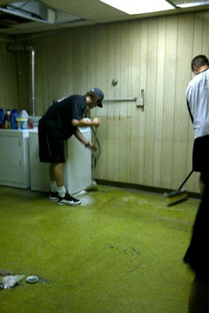 Aaron Thompson (left) and Aaron Pribanic (right) take to cleaning the floors