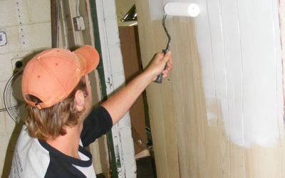 Mike Colla takes on a wall with the paint roller