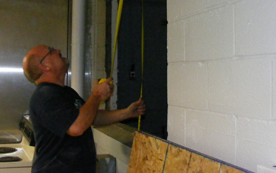 Kirk Stiffler measures up the window for a new frame