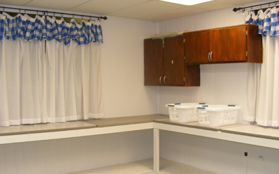 We knew that we couldn’t just go out and buy all of the stuff we needed because it just wasn’t in the budget this year.  So we wrote up a donation request letter and hit the streets.  We called on Sears of Altoona for paint supplies and Ray totally came through for us!  We called on Home Depot of Altoona for fluorescent bulbs, wafer & framing boards and more and Neil really hooked us up!  We called our friend Timmy at New Pig for counter tops & lighting fixtures and we were once again grateful!  Bettwy Electric helped with upgrading the room.  YBC of Altoona donated ceiling tiles and a new window.  The Hite Company, Curve fans & staff also donated items & money in order to complete the job.