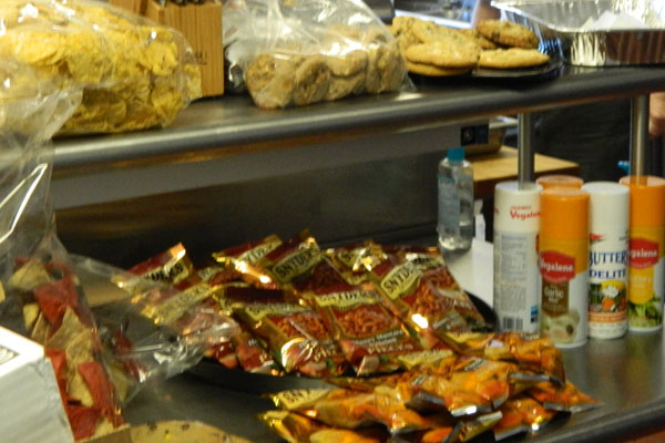 Regardless, the spread was plentiful and and induced an adequate food coma that ruined any chance of us eating something at lunch. We taste tested three different types of french fries (standard fries with the skin left on the end, shoestring fries (smaller/thinner ones) and some that were dipped in a batter. They also had two types of hamburgers for us to taste but I only took half of one (it’s 10:30 a.m. and I’m not ready to eat a full hamburger yet). Also in the assortment of delectable items were three different kinds of wings (BBQ, Spicy, Breaded), three different styles of hot dogs, different types of pretzels from Snyder’s and (my personal favorite) an assortment of cookies! Now when you get cookies you get the typical assortment of chocolate chip, sugar, peanut butter, chocolate chunk, etc. but my personal favorite of Oatmeal Raisins are always left out. NOT TODAY! They had an Oatmeal Raisin Cookie with Cranberry Raisins in it as well…An Oatmeal CranRaisin cookie!